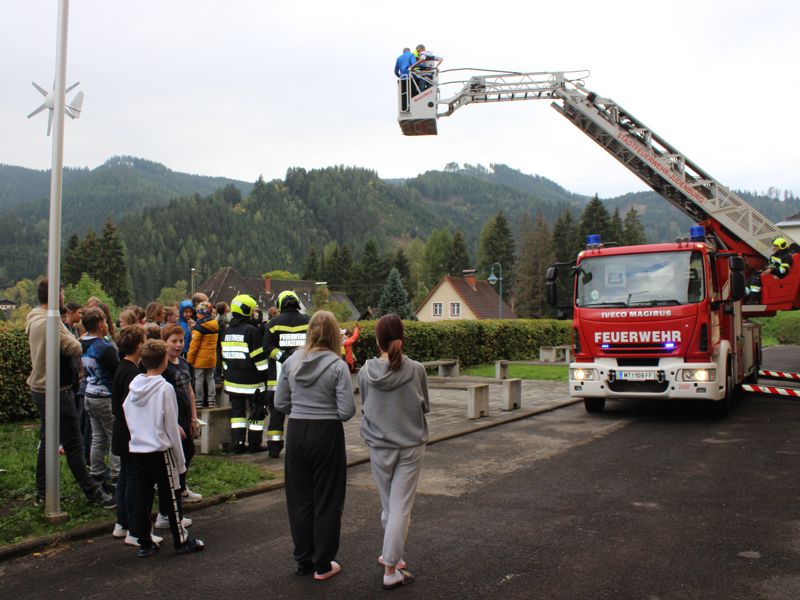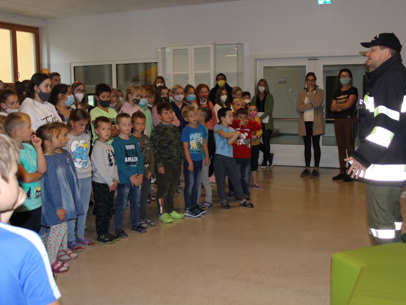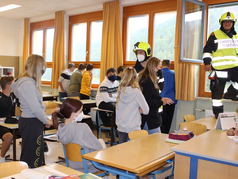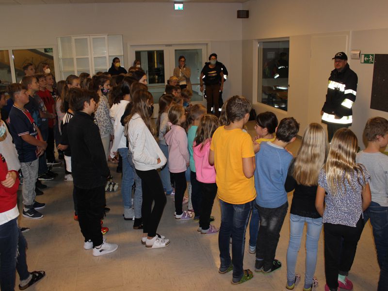 Schüler der Volksschule und der Mittelschule für den Ernstfall geprobt: