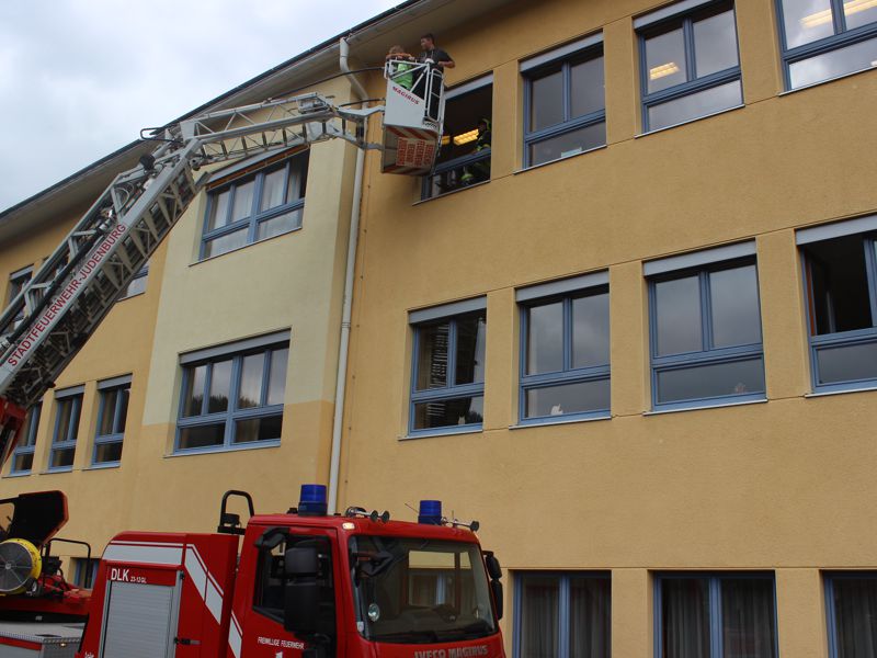 wurden mit der Drehleiter
